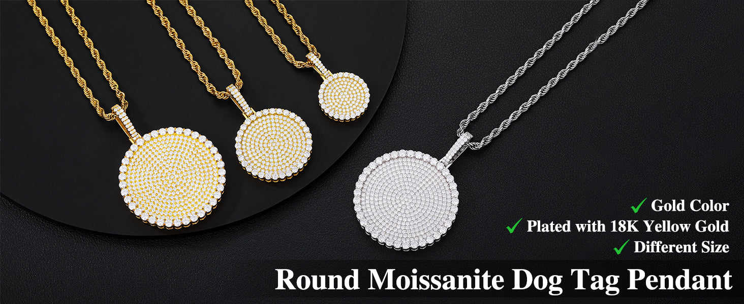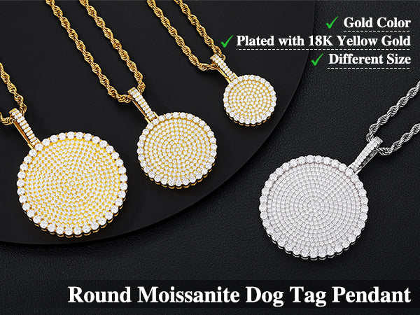 S925 Moissanite Round Dog Tag Pendant