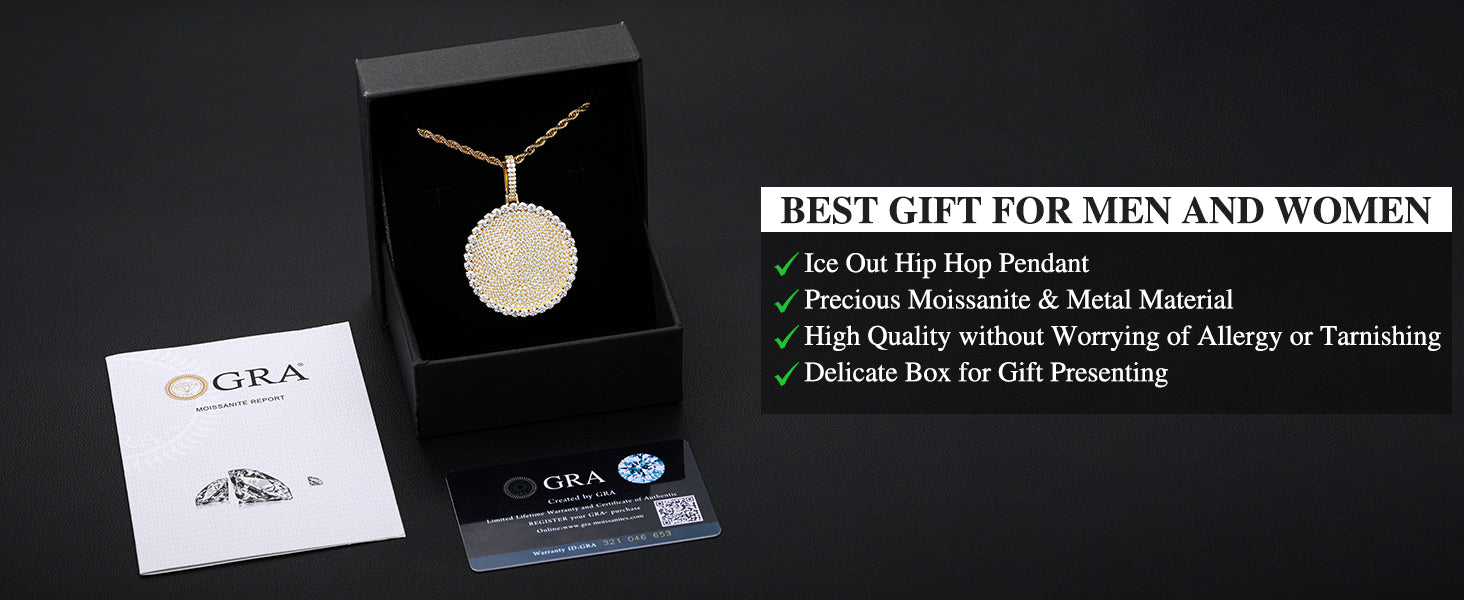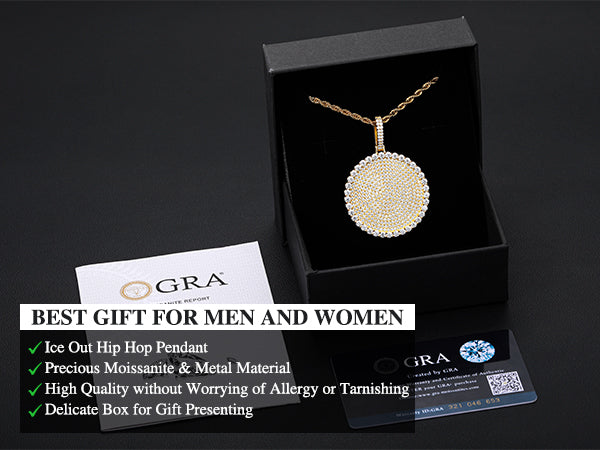 Package Content: A Pendant, A Chain, A GRA Certificate, A Dust Bag, A Gift Box, A Jewelry Cloth and A Warranty Card