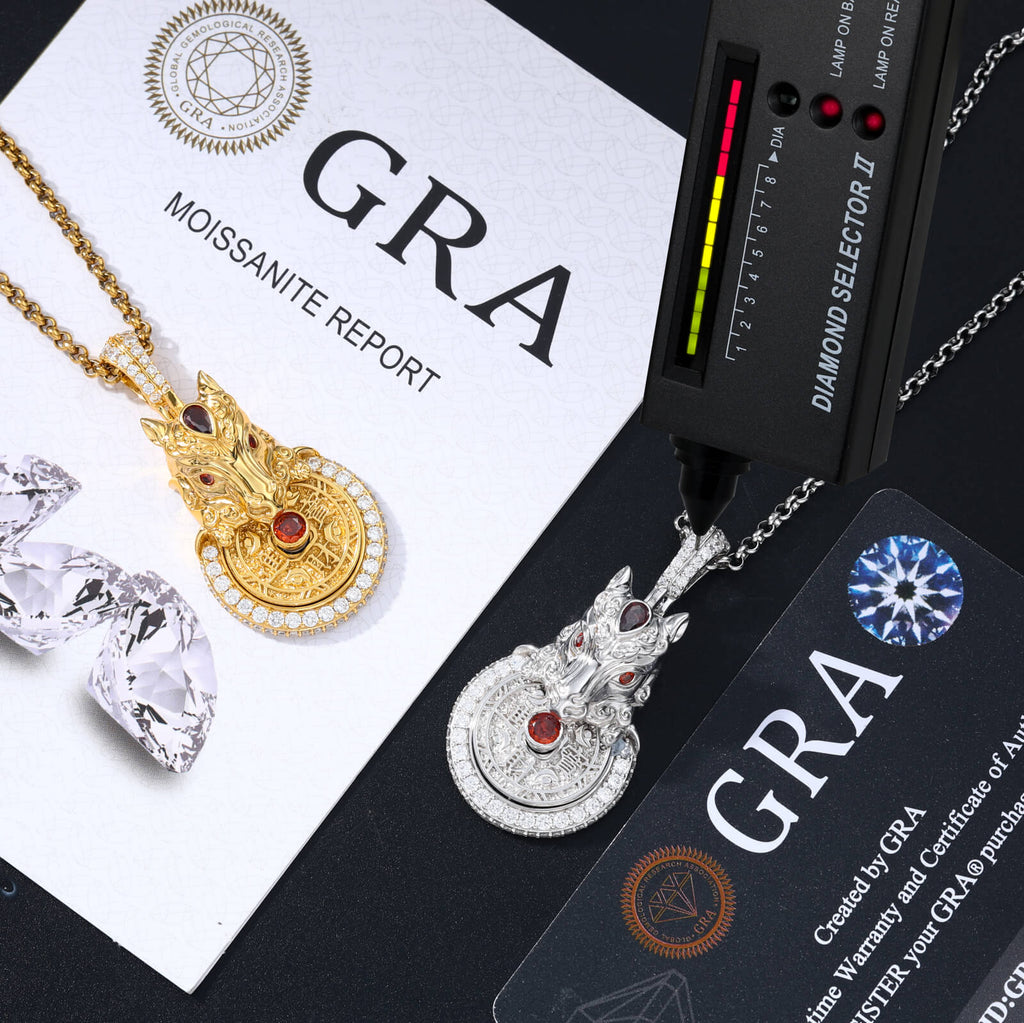 Package Content: A Pendant, A Chain, A GRA Certificate, A Dust Bag, A Gift Box, A Jewelry Cloth and A Warranty Card