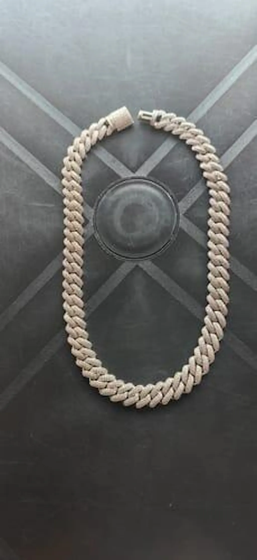 (CZ)14mm 2 Rows CZ Prong Cuban Link Chain