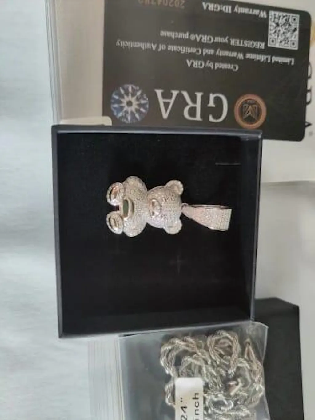 Package Content: A Pendant, A Free Chain, A GRA Certificate, A Dust Bag, A Gift Box, A Jewelry Cloth and A Warranty Card