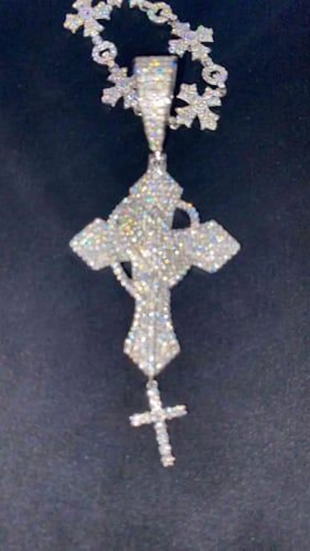 Expertly crafted with 925 sterling silver, this S925 Moissanite Pray Hand Cross Pendant features a large cross pendant with a smaller hanging cross. The D Color VVS1 Clarity Moissanite stone, certified by GRA, passes the diamond tester, ensuring its authenticity. Elevate your style with this real gold pendant.