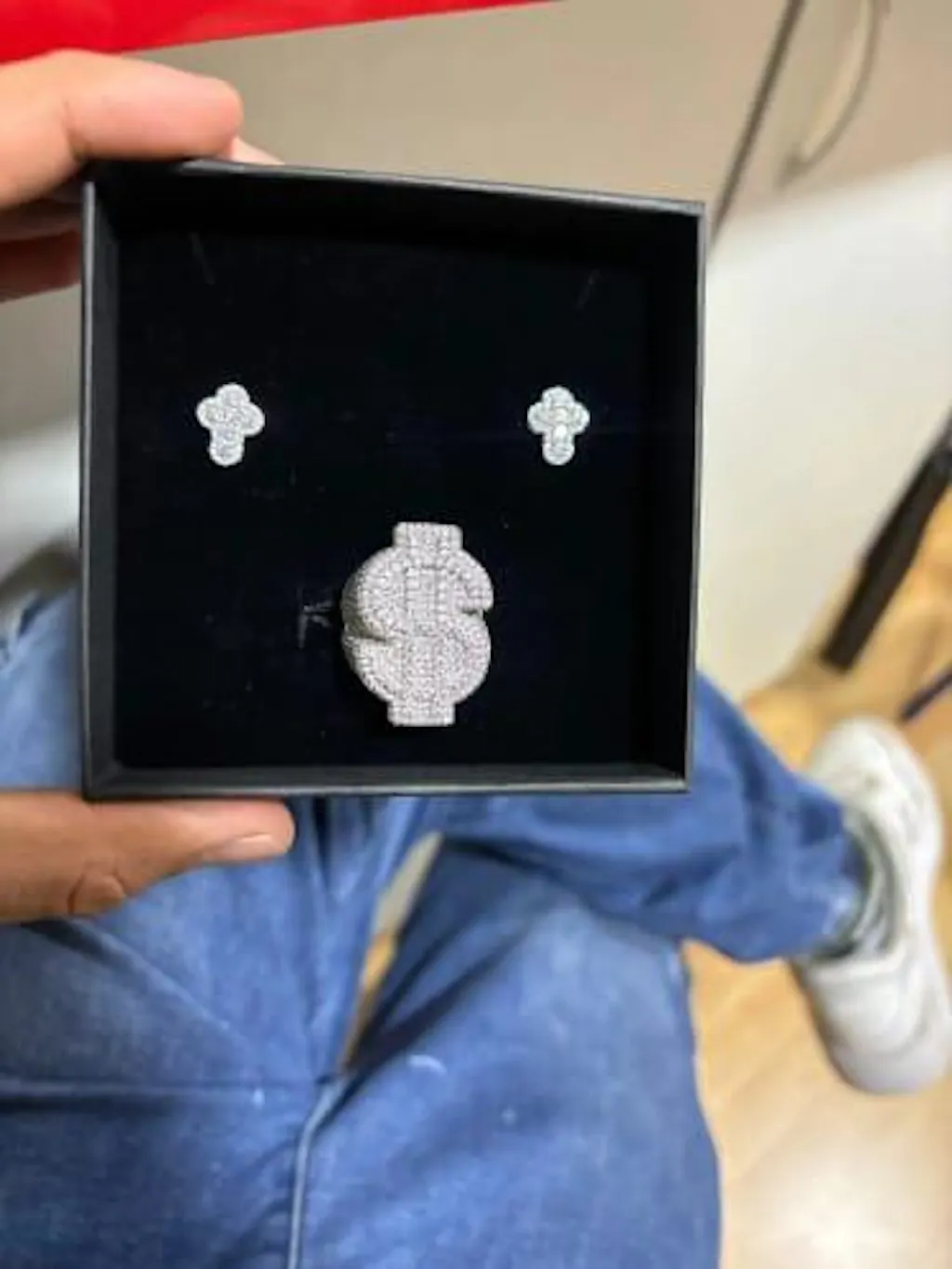 This ring epitomizes luxury with its 925 sterling silver and real white gold plating. Its Mirco paved D Color VVS Moissanite Diamond adds a touch of elegance, while its US dollar design makes it truly unique. Indulge in this statement piece for an opulent and sophisticated look.