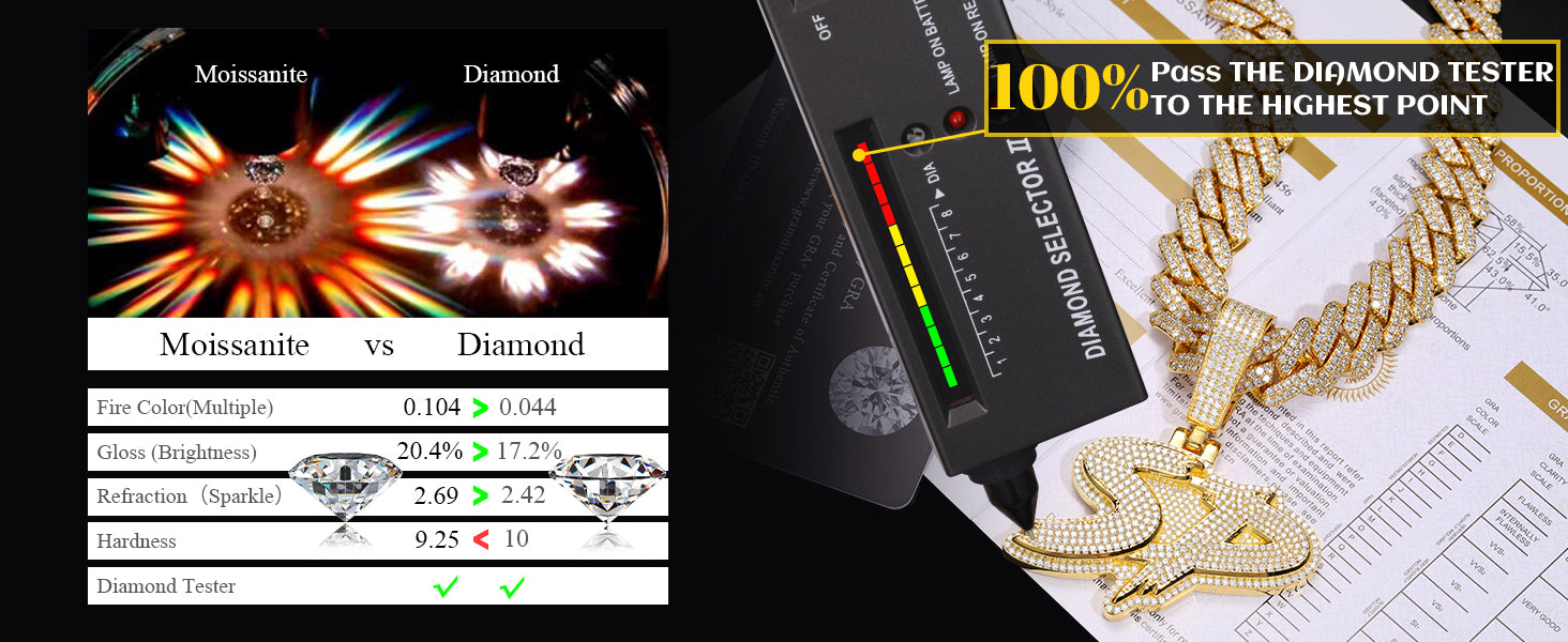 The uniqueness of moissanite makes it more and more popular among rappers. It not only costs less than 1/10 of the price of diamonds, but also does not take any harm to the earth.