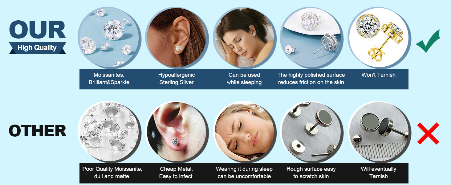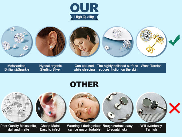 【Hypoallergenic Earrings】The earrings posts and claws are made of 925 sterling silver. All the metals we use are lead-free, nickel-free and hypoallergenic, which are suitable for almost all sensitive ears. These earrings will not turn your skin green, red or itchy.