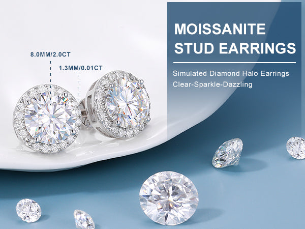 S925 Moissanite Halo Stud Earrings
