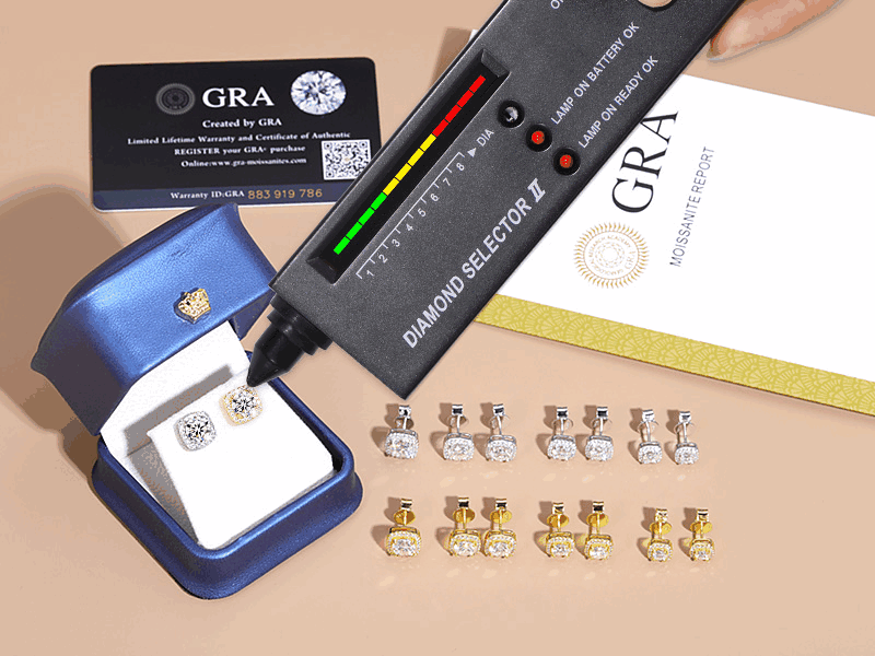Unlike those cubic zironia stud earrings, every moissanite has a GRA Certificate and they can pass the diamond tester.
