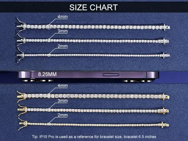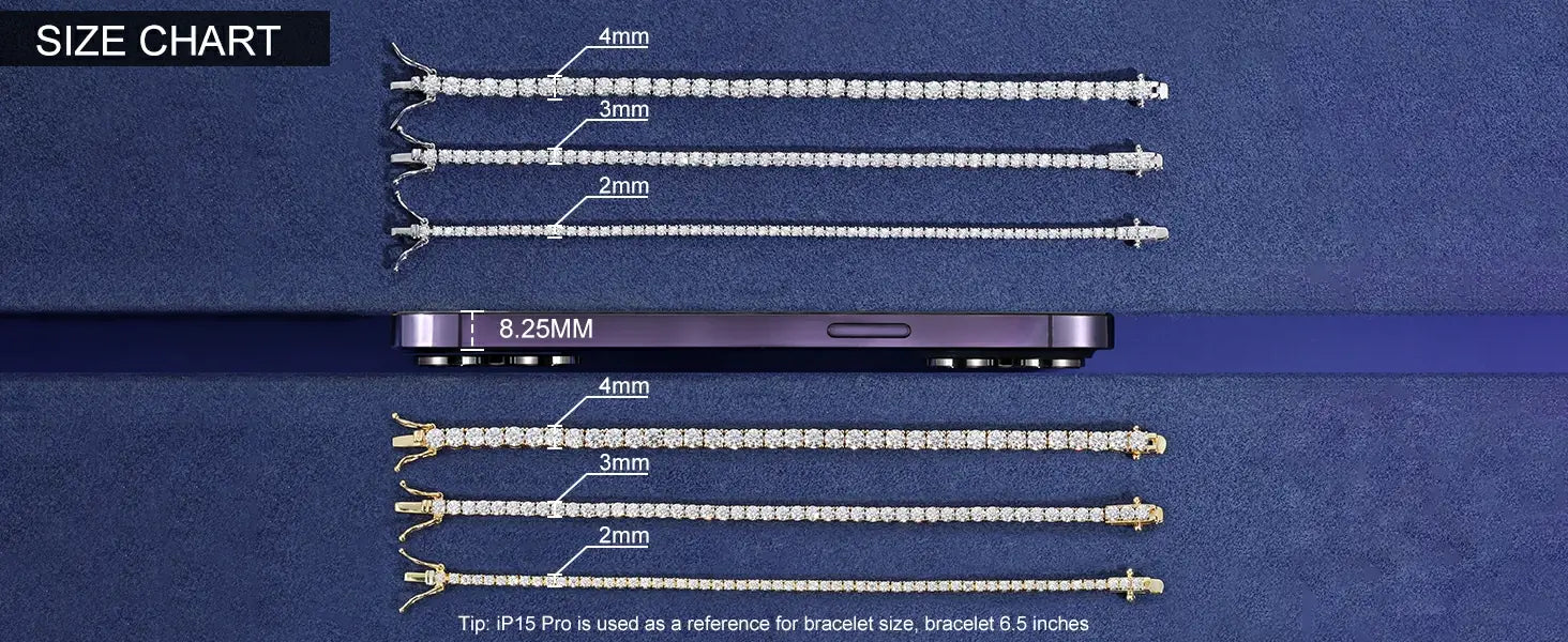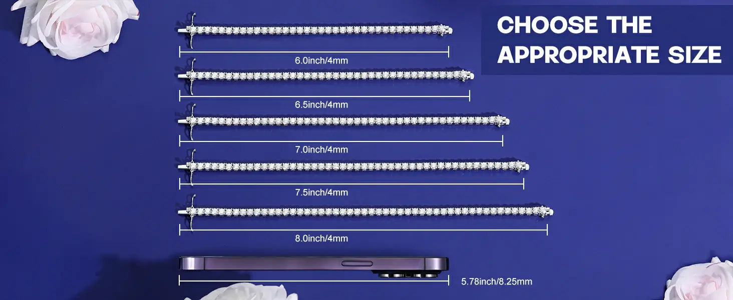 - 【Moissanite Tennis Bracelet Details】The 4mm Width 6inch Length moissanite tennis bracelet is adorned with 4mm*36pcs moissanite,total 10.8CT. Made of D color VVS1 clarity brilliant round cut lab created moissanite and 925 sterling silver! Our bracelet have the most sizes from 2-4mm width and 6-8inch length, suitable for women and men, whether you like large or small bracelet. Please see the size details carefully before you place order.